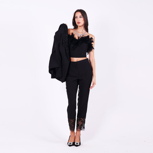 Дамските панталони на LIZA KAIN съчетават изчистена линия и изискано излъчване. Съчетани с корсет или сако, те създават визия, която е достойна алтернатива на официална или абитуриентска рокля.