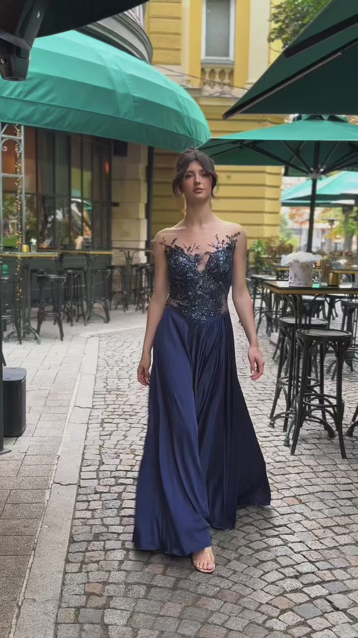 The Twila formal dress is designed for women who exude class and elegance. Made of shiny satin in a deep navy shade, it impresses with its sophisticated look and grace.