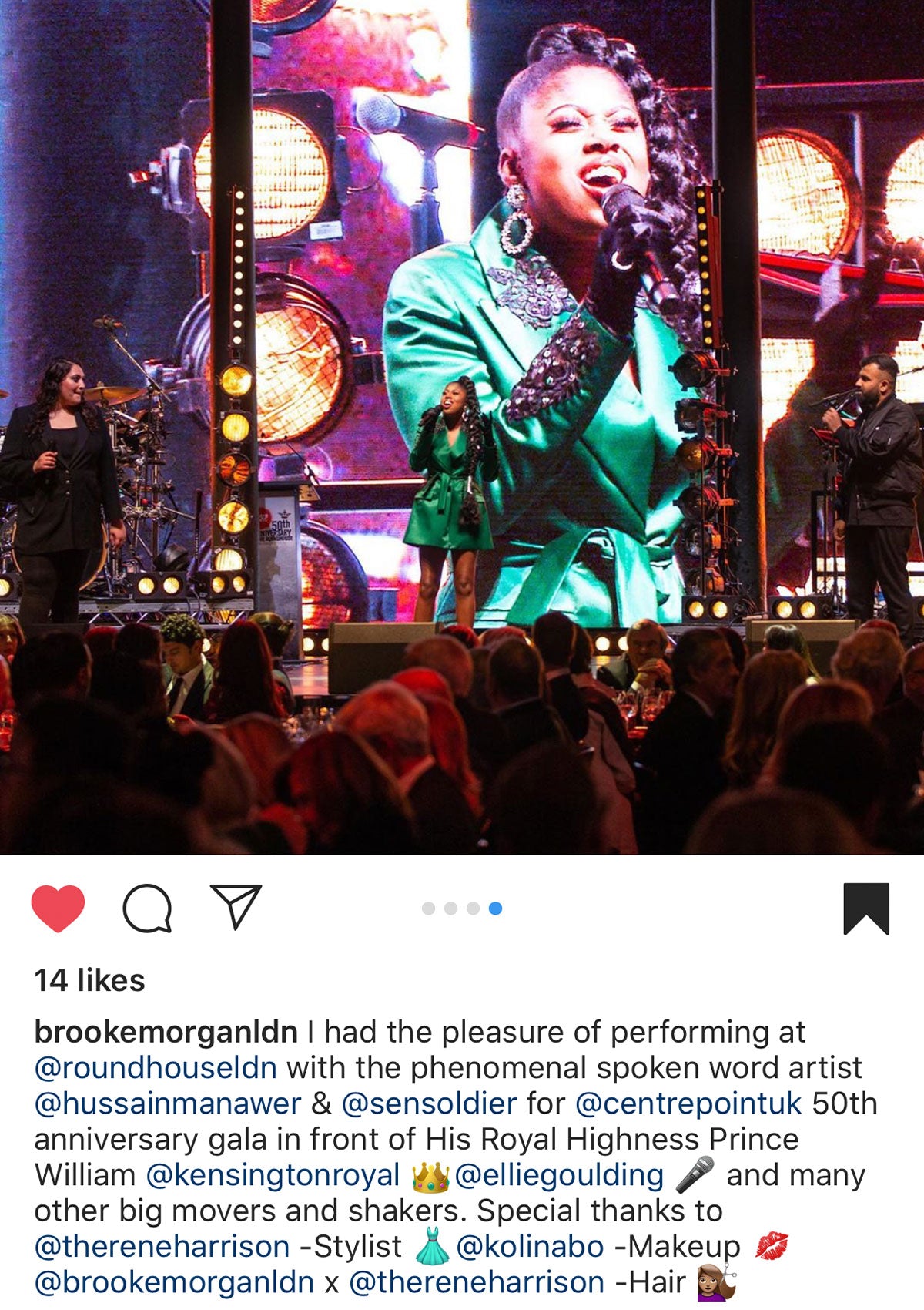 Brooke Morgan, облечена с тоалет на Liza Kain, участва в благотворителен концерт на принц Уилям в памет на принцеса Даяна
