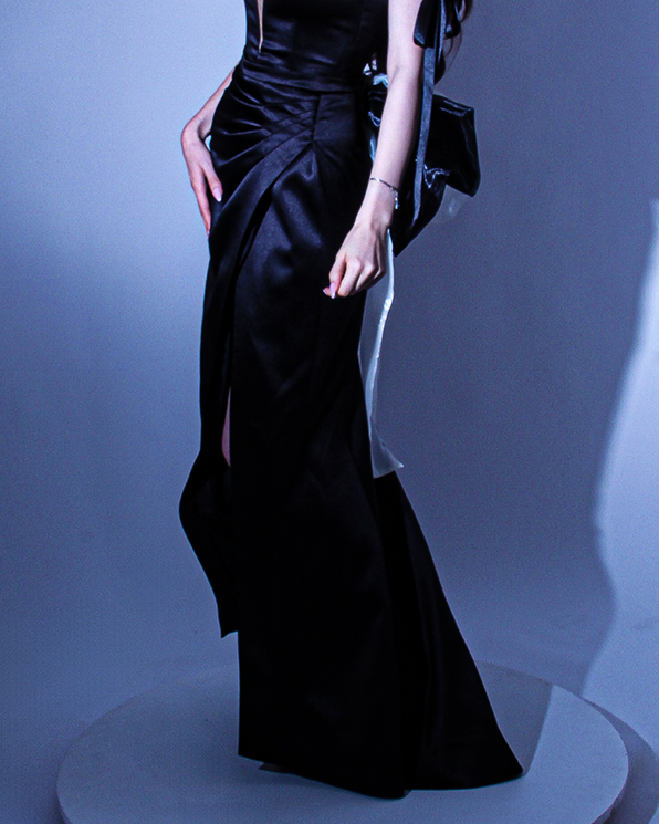 Дълга сатенирана пола с изящество и движение - създадена, за да подчертаете женствеността с всяка крачка. Нежният еластичен сатен прелива меко по тялото, а фините чупки и елегантната цепка придават лекота и свобода на движението. Съвършен избор за официална рокля с изтънчен силует или стилна абитуриентска рокля с доза драматизъм.