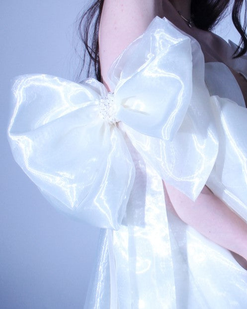 Ръчно изработена панделка от фина органза, деликатно украсена с перли. Кокетен детайл, който може да бъде добавен към булчинска рокла, официален тоалет, прическа или аксесоар. Нежен акцент за Вашият специален ден.