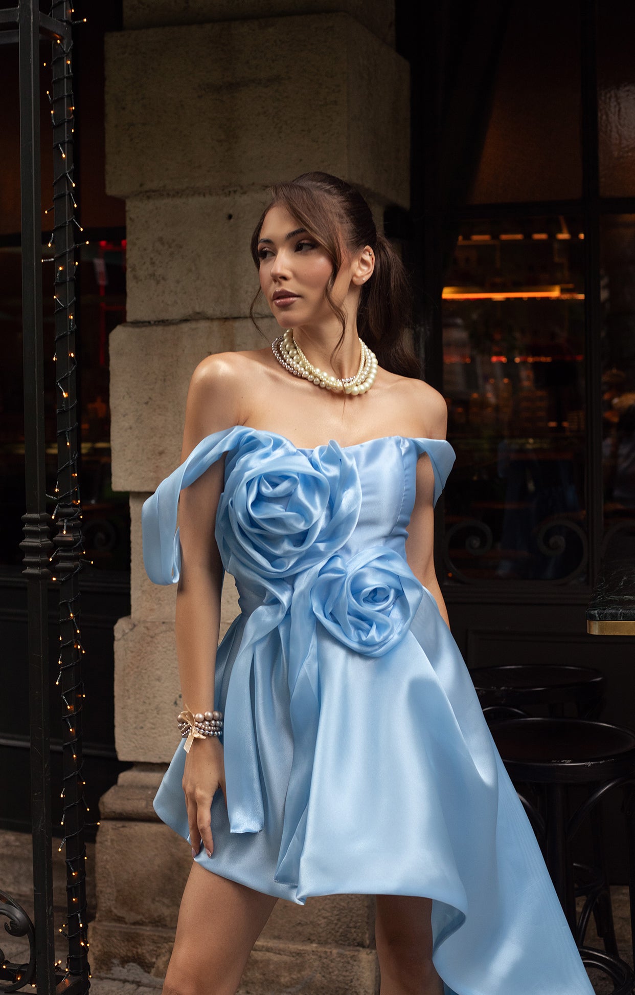 Вдъхновение от елегантност и лекота, официална рокля Midra е създадена за жената, която иска да съчетае артистичност и неподправена женственост. Асиметричният силует и нежните паднали ръкави носят динамика и изящество, докато органзата дарява визията със свобода и пластичност, както и изискан блясък.